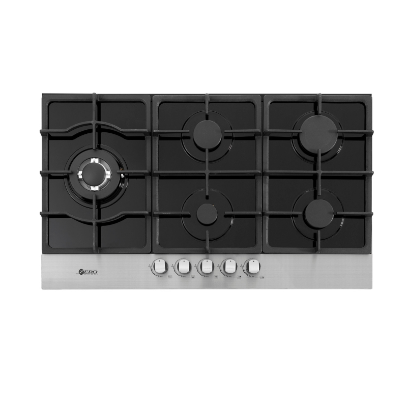 Zero Appliances 5 Burner Black Glass + Stainless Steel Hob